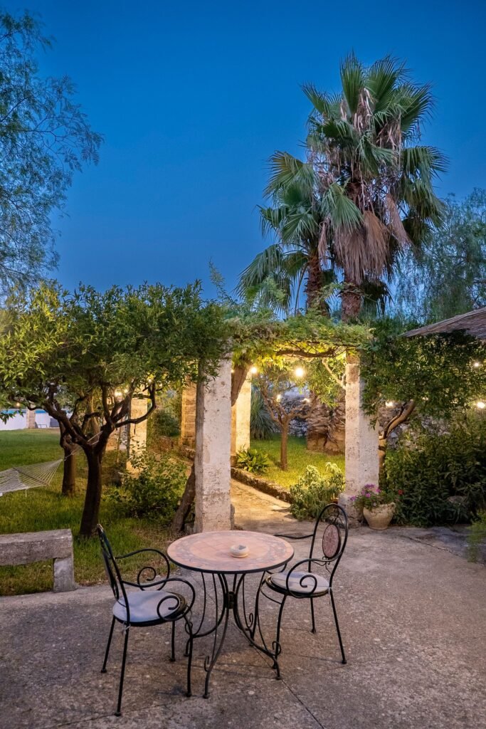 Cosa c’è di meglio, dopo una intensa giornata vissuta nel mare del Salento, di un po’ di relax al fresco del nostro grande giardino, sempre accarezzato da una fresca brezza, tra il profumo di fiori e piante arornatiche, distesi sulle sdraio o sull’erba all’ombra di un albero.