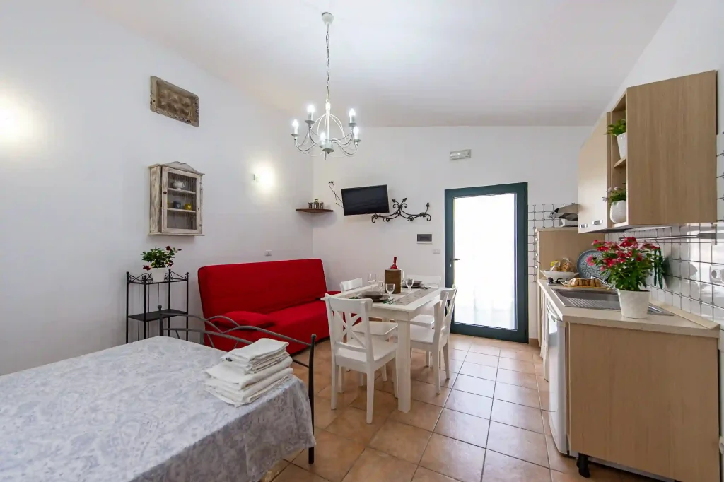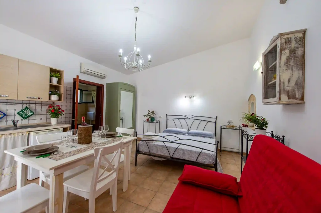L’appartamento “Glicine” è un ampio monolocale silenzioso che affaccia direttamente sul giardino.